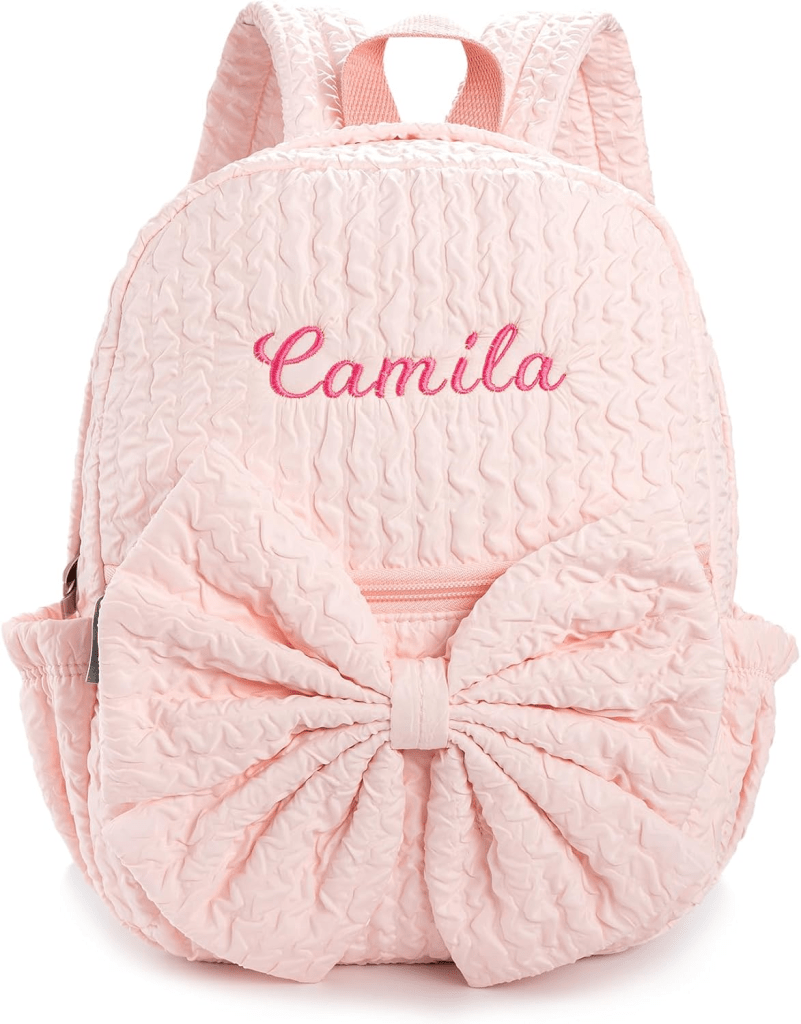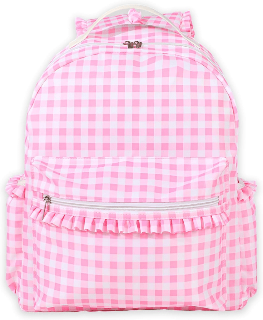 π 1οΈβ£ Backpack β Pink Seersucker with Bow