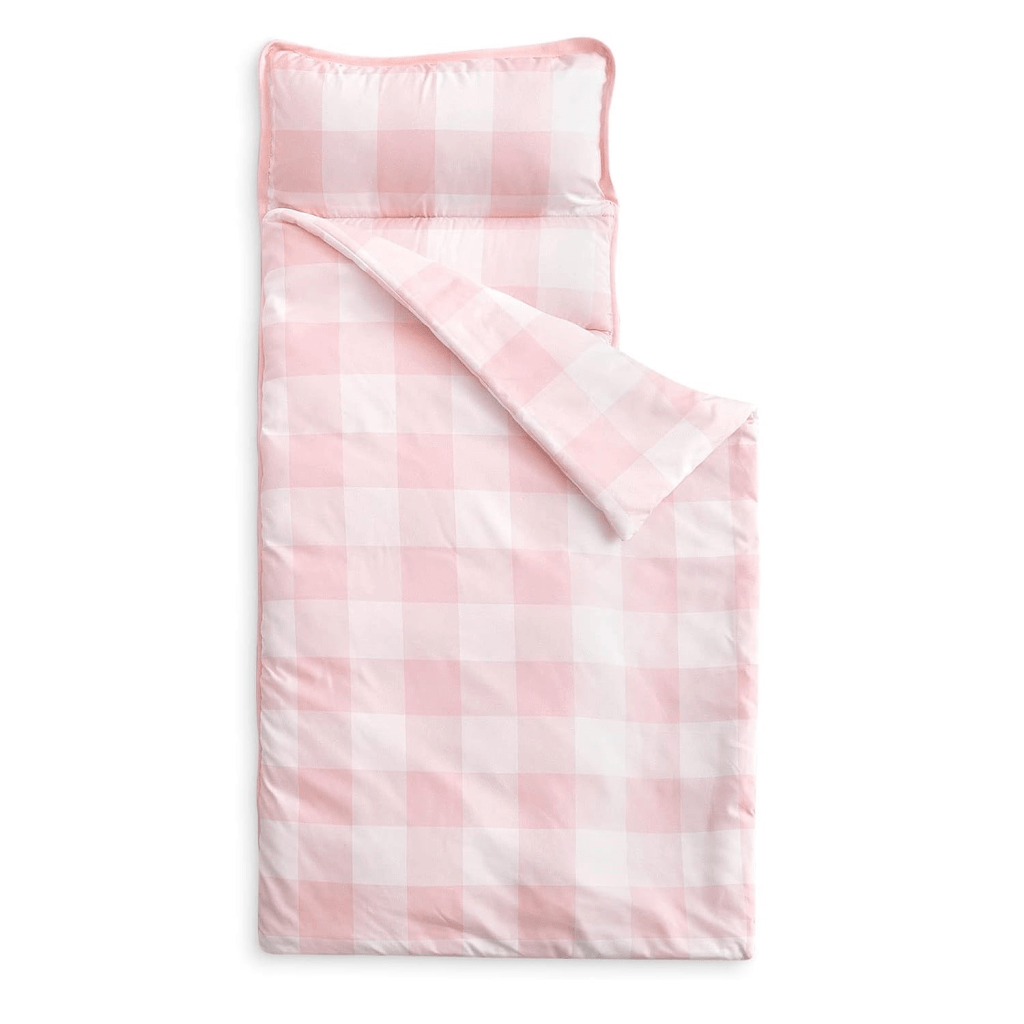 Nap time, but make it preppy! This roll up mat has a built in pillow and blanket in classic pink gingham, making rest time both comfy and stylish.