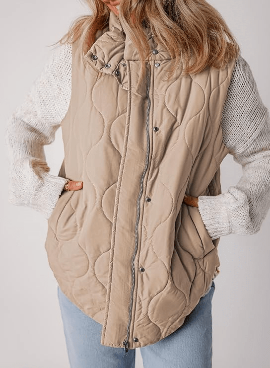 - Quilted Vests & Jackets – Lightweight yet warm—ideal for coastal walks or game day.