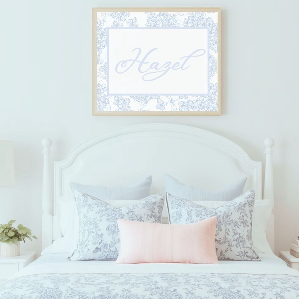 Our new name prints were designed with that aesthetic in mind — combining classic patterns and delicate script fonts that feel right at home in both traditional and modern spaces.