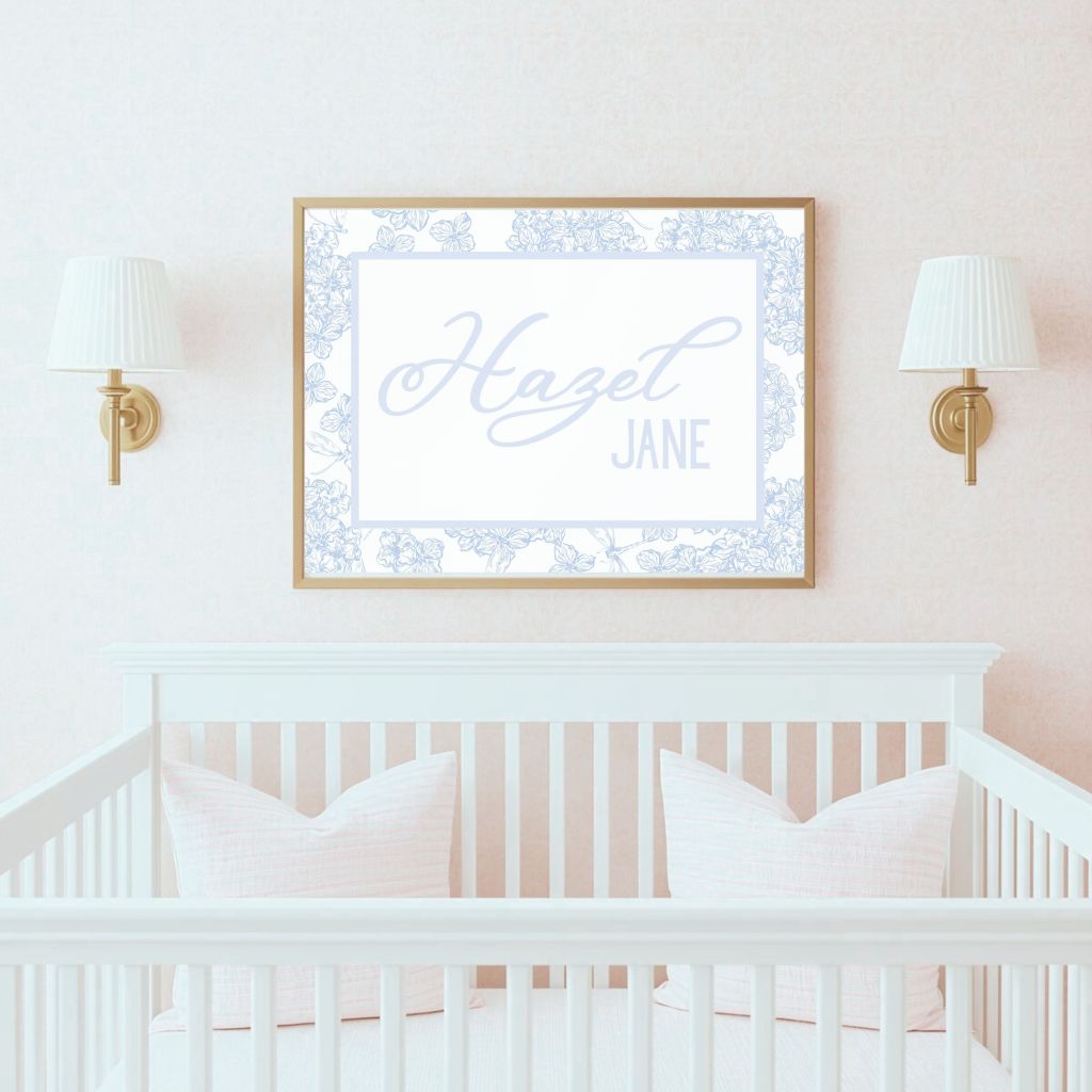 Our new name prints were designed with that aesthetic in mind — combining classic patterns and delicate script fonts that feel right at home in both traditional and modern spaces.